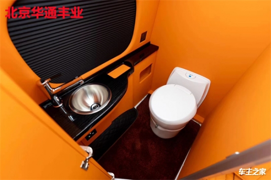 卫生间区域的设计尤为亮眼:采用电动折叠门节省空间,内部配备陶瓷电动粉碎马桶、折叠式洗手台、镜柜及淋浴花洒。水路系统包含80L清水箱和防异味灰水箱,并支持外接营地供水。车尾还隐藏了抽拉式户外厨房,满足多元化出行需求。